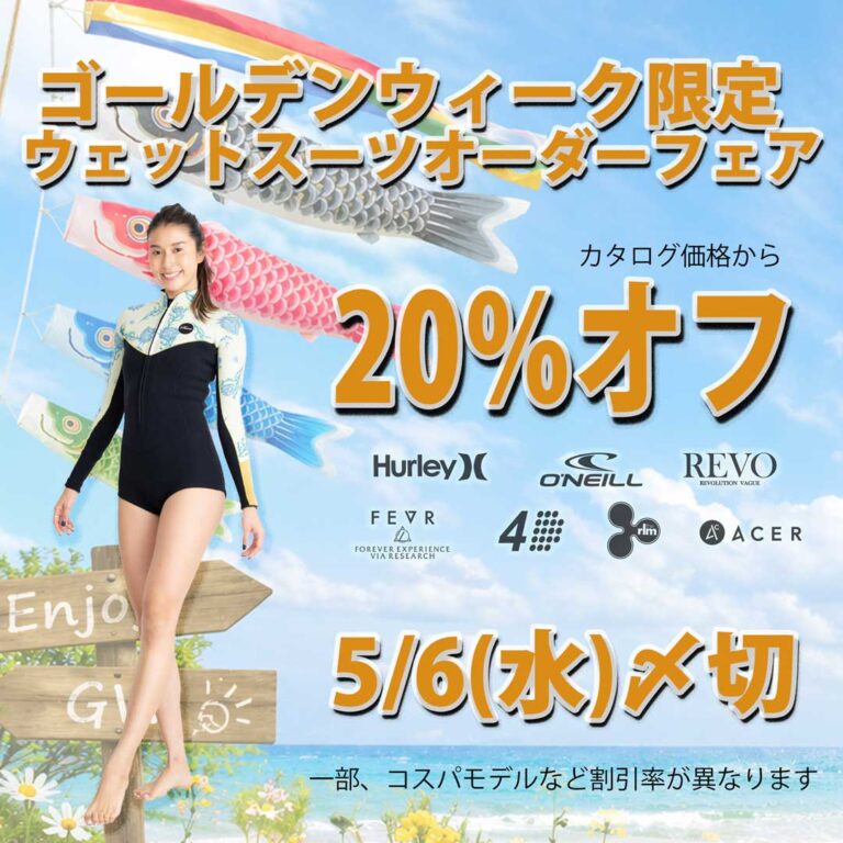 ウェットスーツオーダーフェアは4/12(日)まで!カタログ、集めました!よ〜く見てくださいね! REVOLUTION ウェブカタログhttps://nouvellevague.co.jp/wetsuits/revo_ss/ Hurley WETSUI […]