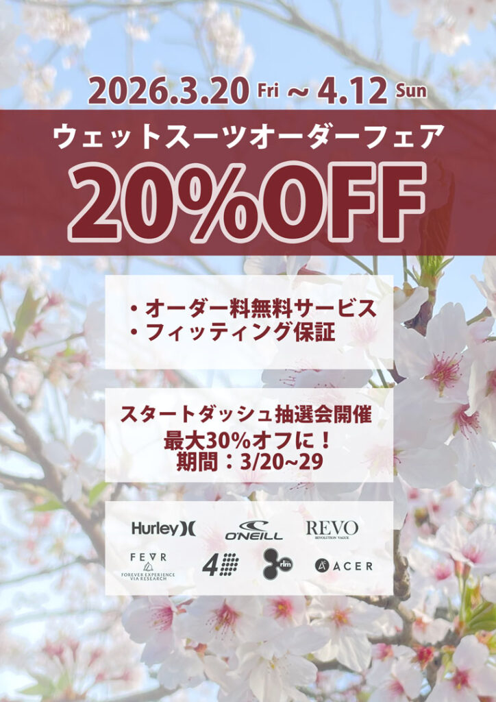 3mmジャーフルの出番が少なくなった? 春が短く、すぐに初夏の陽気に、そして長い残暑。。。 温暖化の影響で夏が長期化してます 3mmは熱いし、スプリングにはまだ早い そこでオール2mmジャーフル! 軽さと伸び感を実感できるスペシャルなスーツ 伸びがハ […]