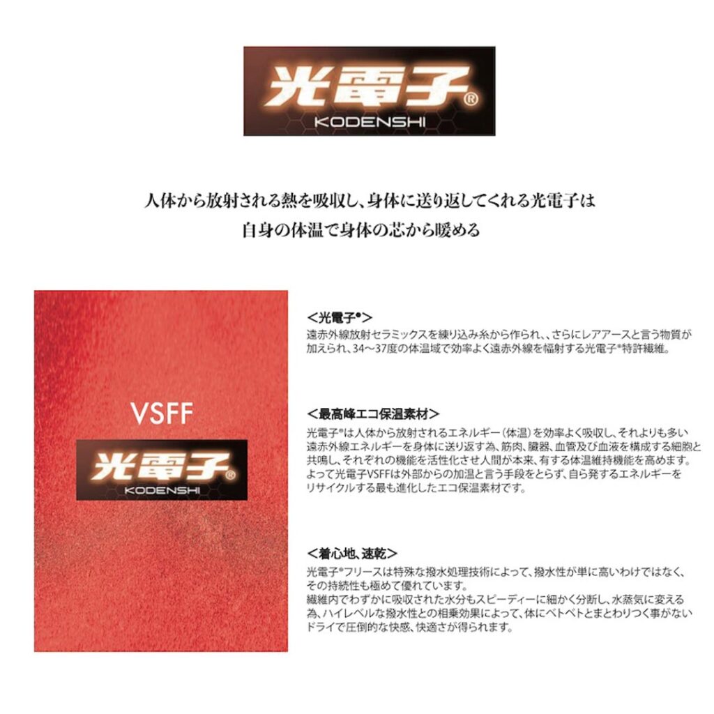 企業秘密もありお伝えできないこともありますが、糸にも撥水かけてありますし、実は起毛の毛量であったり、毛の立たせ方が肝になっているんです。それにより水捌けが良く最大限に光電子®︎セラミックの効果が活かされるようになりました。
