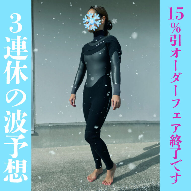 セミドライが多数派になってしまいました〜砂が冷たいのでブーツ履く方もいます 冬のウェットスーツ、大丈夫ですか?この連休がお得にオーダーできるラストチャンスです! 冬の空いてる海でいい波を満喫するなら、安心できるセミドライを確保しましょう!お気軽にご相 […]