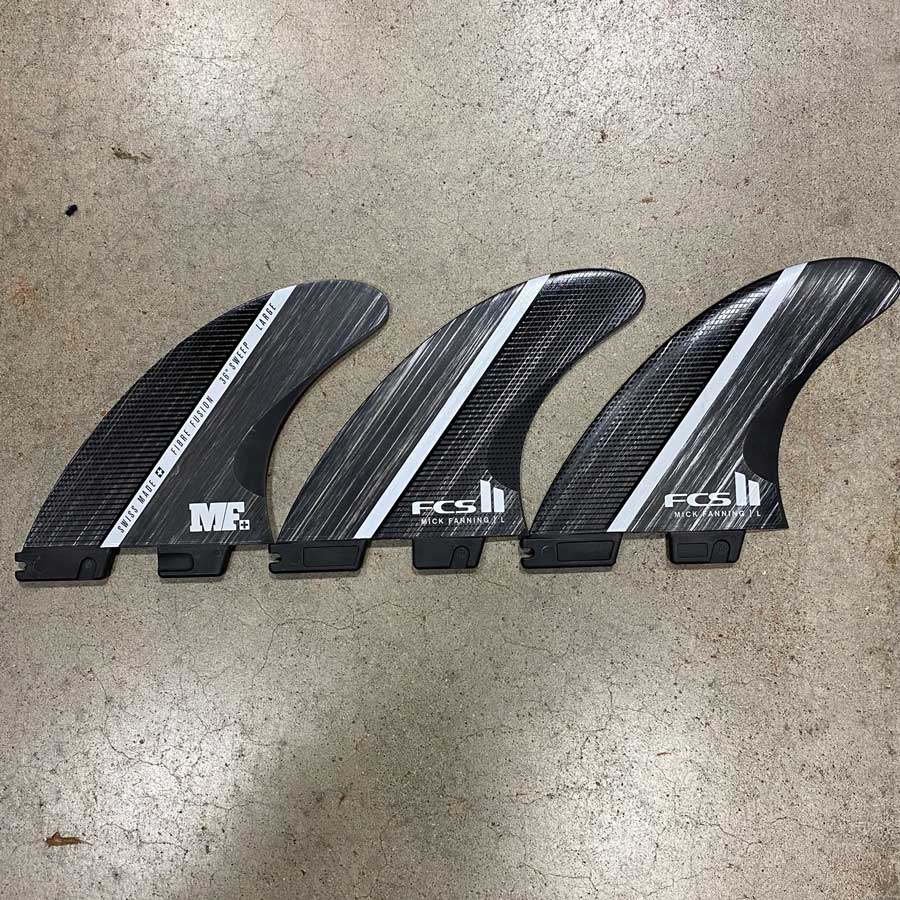 サイドフィンはティップのフレックスを生かし、センターはブレない軸をキープする構造のようです。