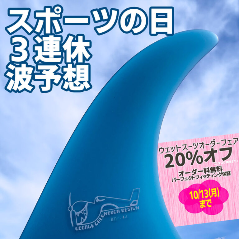 スポーツの日3連休、波予想します!ウェットスーツオーダーフェア残り3日!