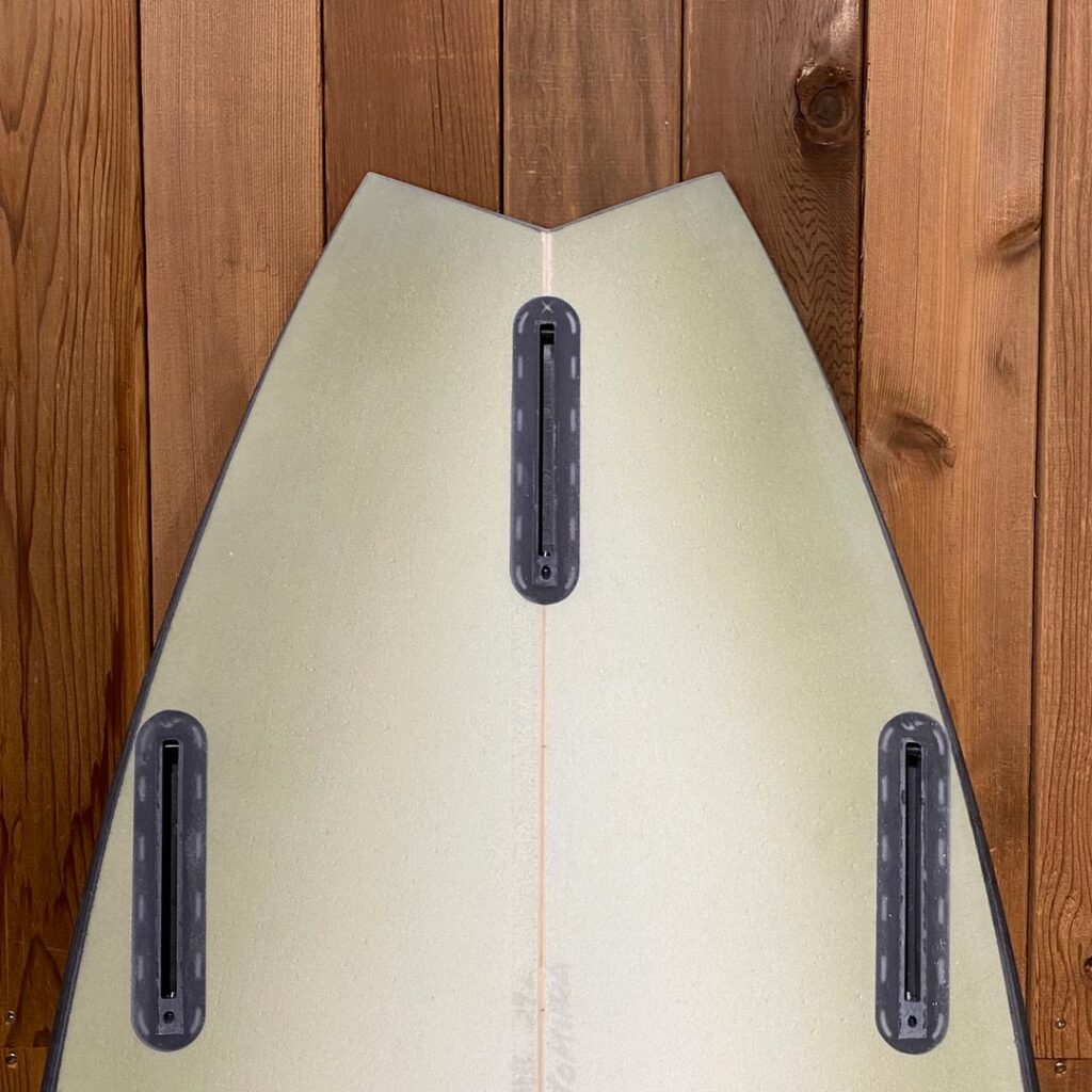 ノーズはややシャープで軽く、スワローテールが波に食いつきシャープな動きを可能にする